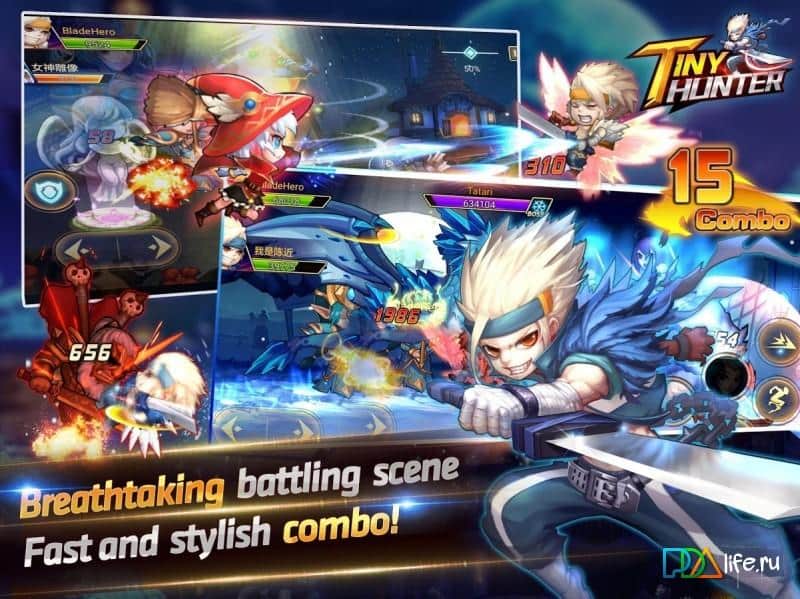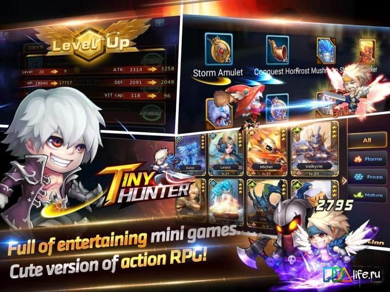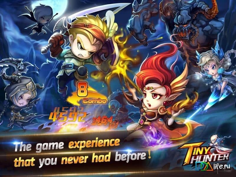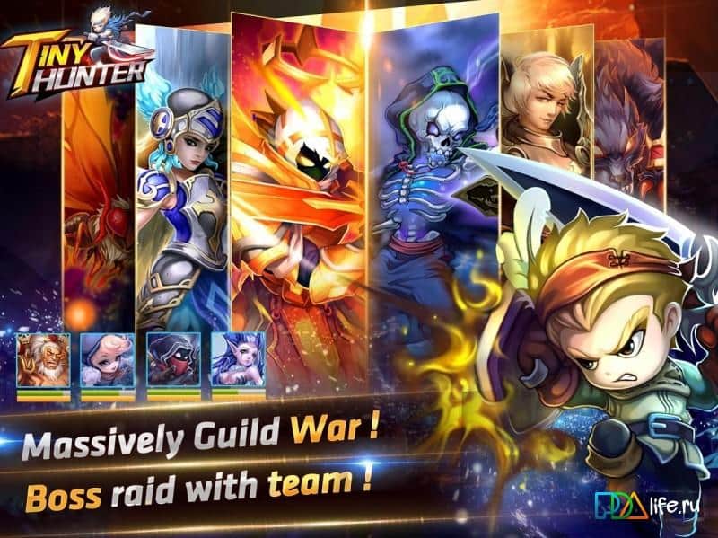 Tiny Hunter – gather your team invincible heroes and save the Kingdom from demons and monsters. Assemble your team of unique characters, where each character complements his other skills. Explore all secret places of this dangerous world, where they can hide enemies and descend into the dark dungeons and travel through the dark forests. Fight powerful spells possessed by the characters and lethal weapon. Create invincible Guild, combining their forces with your friends and challenge the strongest bosses, taking them ancient treasures. During the game improve the skills of their characters and get them different costumes and gear.