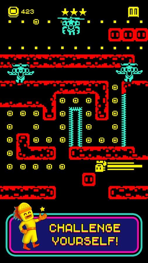 Tomb of the Mask – arcade on Android, where you are transported in a vertical maze, the level of which will be randomly generated. In this game you will act as a pilot who randomly came to the tomb and found a strange mask. Wearing this mask you have a unique opportunity to scale the walls and fly, then all the fun begins. Navigate through dangerous mazes and avoid the numerous enemies, traps and obstacles on the way. Perform assigned missions and tasks and find new masks that give you new abilities. Go to adventure and enjoy the exciting gameplay.