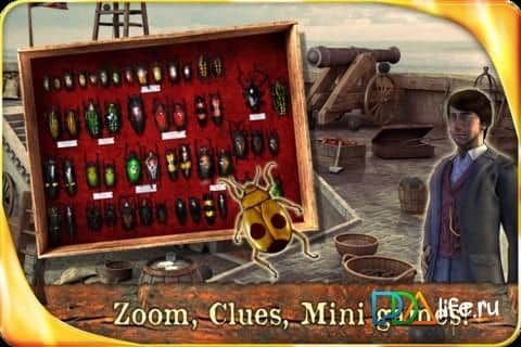 Treasure Island : The Golden Bug - Extended Edition - the game is based on the novel By Edgar Allan PoE, the time of the event - 19th century, the main character finds the Golden beetle. It is here that the real adventure begins! Beetle was wrapped in a sheet of paper, and after some time found that on the sheet somewhere there's a message. And not a simple message, and a series of mysterious puzzles, deciding that you will take the treasure of the legendary pirate Captain Kidd!