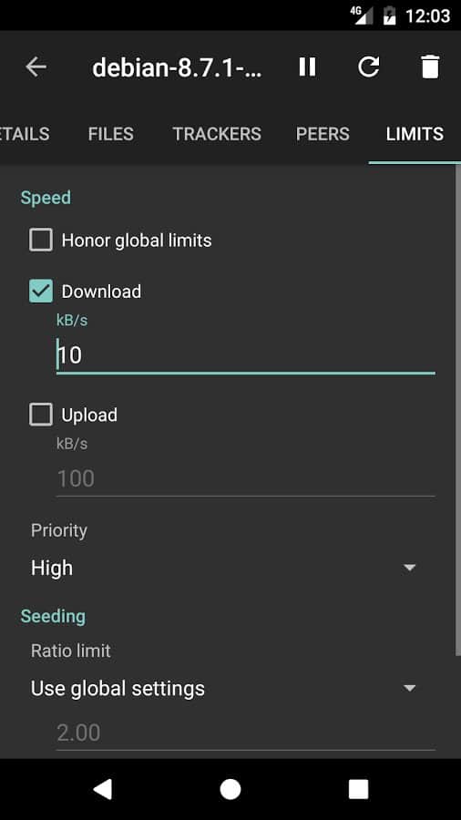 setting limits for torrents