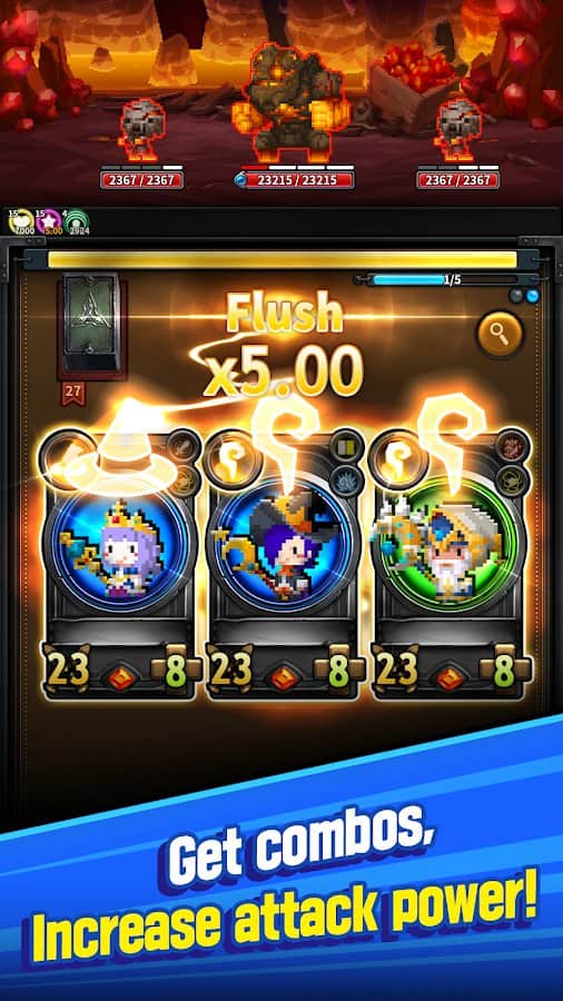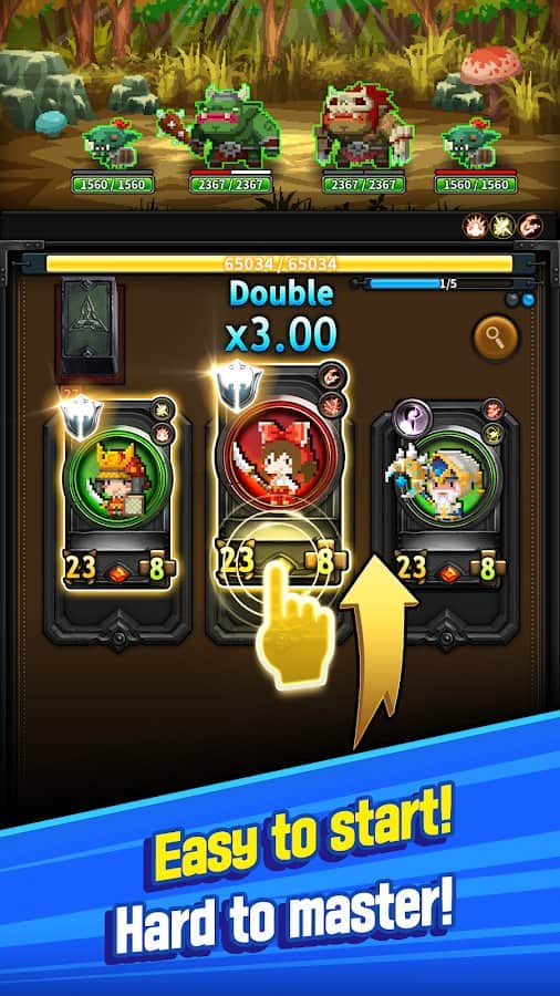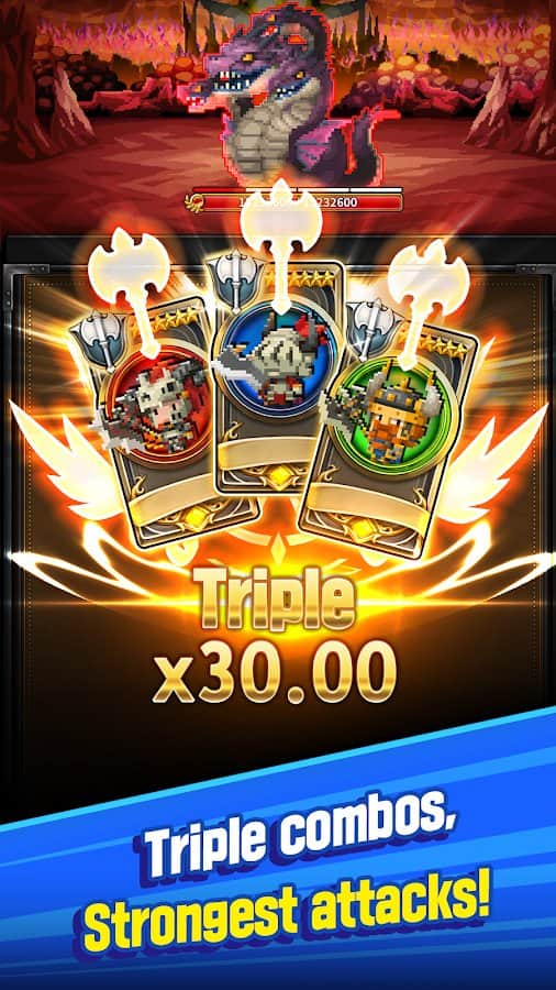 TripleFantasy – card game on Android where you will save the world from destruction. In this game you are transported into a fantastic world ruled by weapons and skills. You are the only one who volunteered to defend the Kingdom from the terrible monsters. Take control of a brave warrior and match between the attack and apply the devastating blows to enemies. Apply your skills and develop your strategy of warfare. Game players will appreciate the retro design, many pixel characters, wide selection of cards and numerous skills.