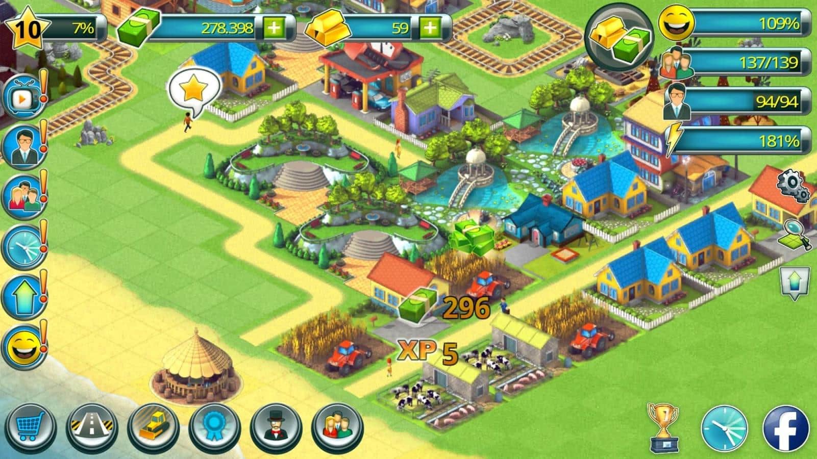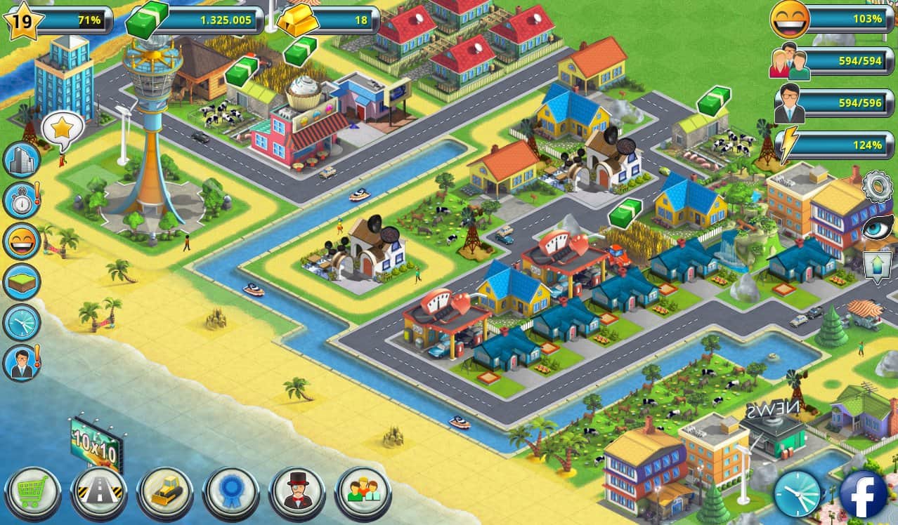 Tropic Town - Island City Bay: Paradise Escape Sim game for fans of strategy. Includes a tropical island where you can build the city of your dreams. Build simple home, which will eventually grow into the majestic skyscrapers. Decorate the city, building parks and ennobling the streets with flowers and trees. Take care of conducting electricity, sewage, and fire safety and police force to keep order on the streets.