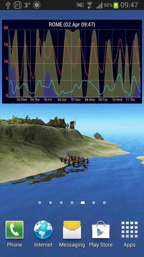 True Weather 3D a beautiful 3D live Wallpaper with high resolution FullHD and HD, as well as widget of weather conditions on the screen of your Android smartphone/tablet. Weather on the peaceful island changes depending on the weather outside your window.
