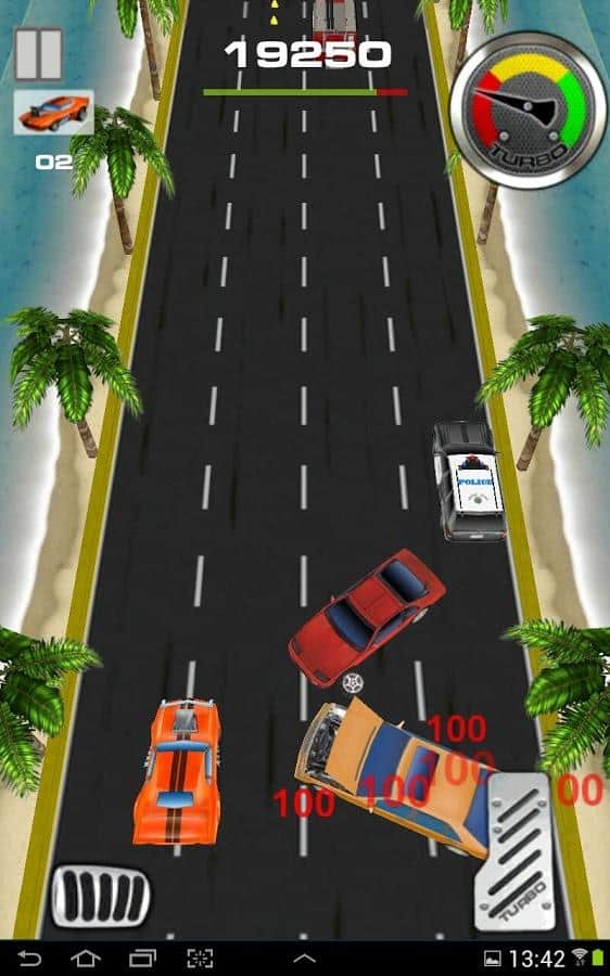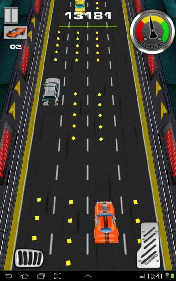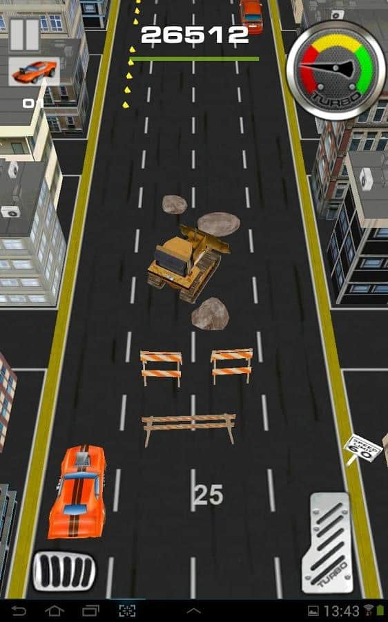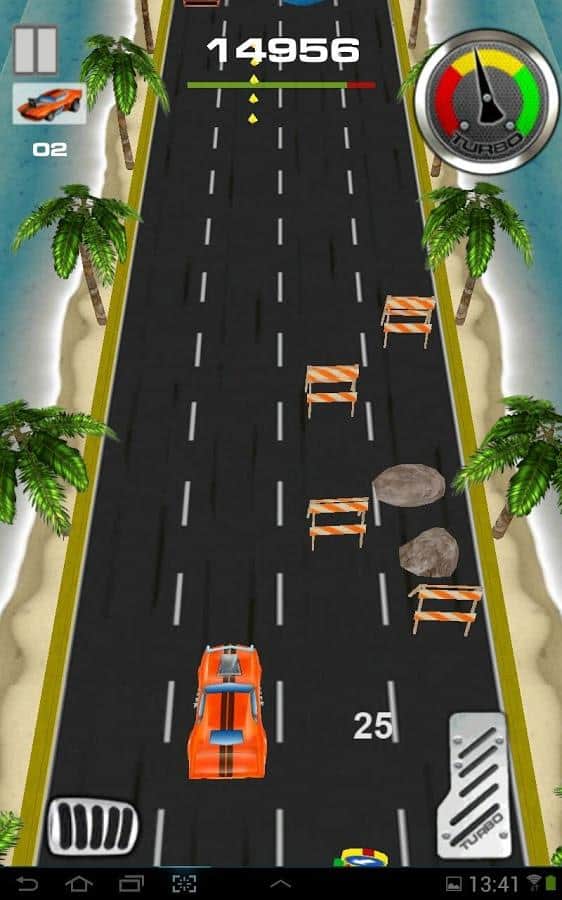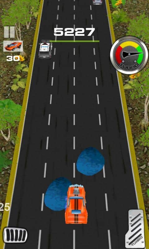 Click on your smartphone, download Turbo Sprint - race and you will not regret it! In the game you control a car with 500 horsepower! And this is not a joke! If overclocking, be careful - avoid collisions with other civilian cars and obstacles. Don't get in a puddle - it significantly reduces the speed! Collect nitro on the road to fill your turbo! Actually, press on the pedal the turbo, just remember that there is also a brake pedal! To change the sensitivity of your car use the slider in the menu. Earn money and buy new tires,improve performance, or buy more lives! In the Android version of the game has a super feature, however as any other device: you need even more lives? Then try "Mega Pak Life", which gives you 10 more lives to be a true champion on the road!
