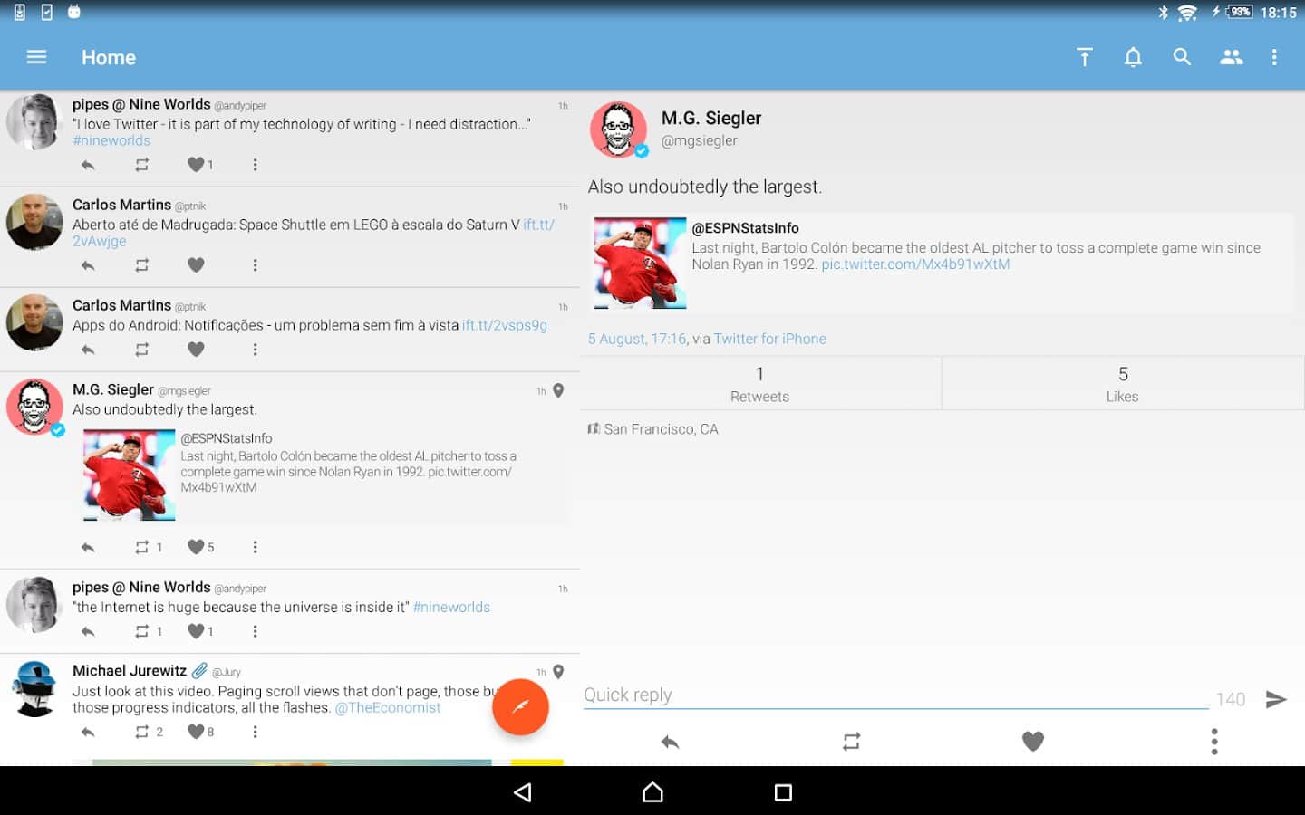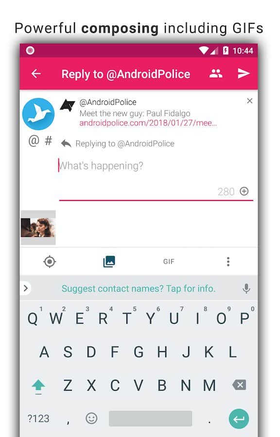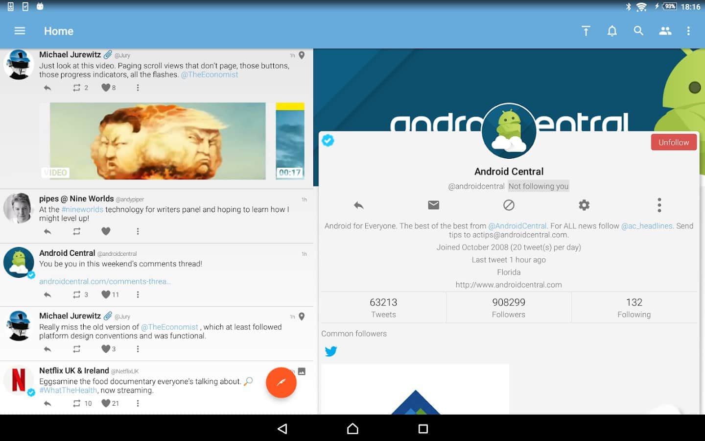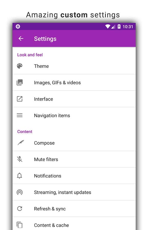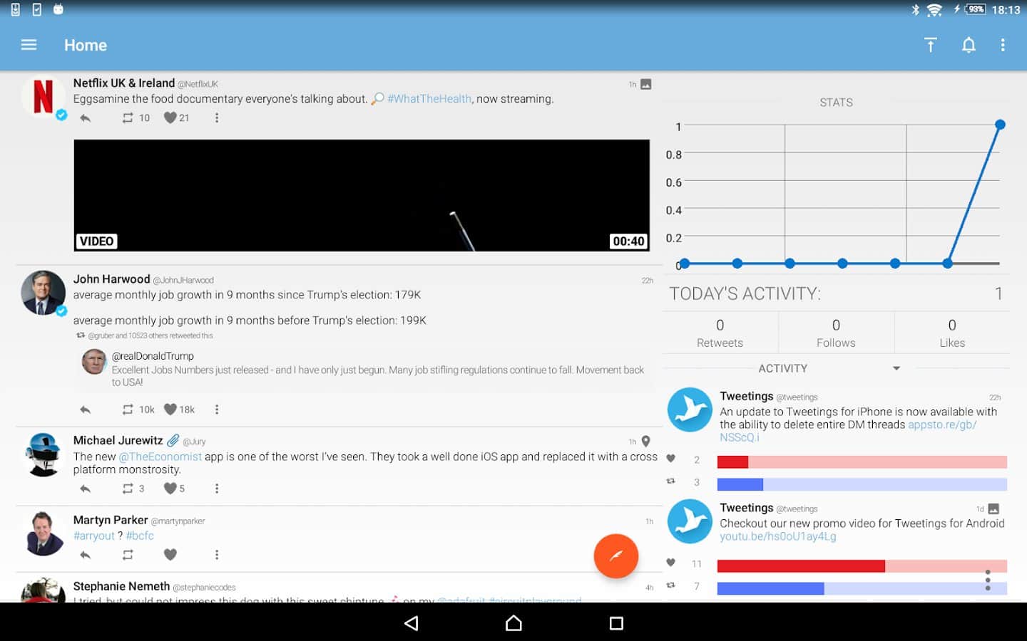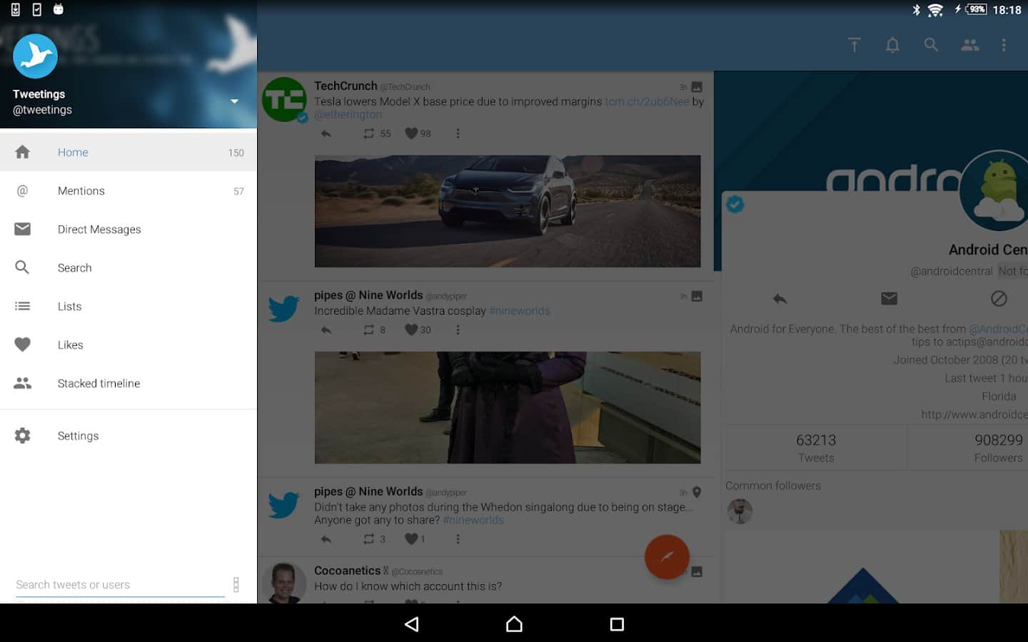 Tweetings for Twitter - Another Twitter client for Android, has a beautiful view. The app supports themes, so you never get bored of its appearance. You can read your favorite tweets and post your in one of the most convenient Twitter client. The program has easy control, in which you'll not long to understand.