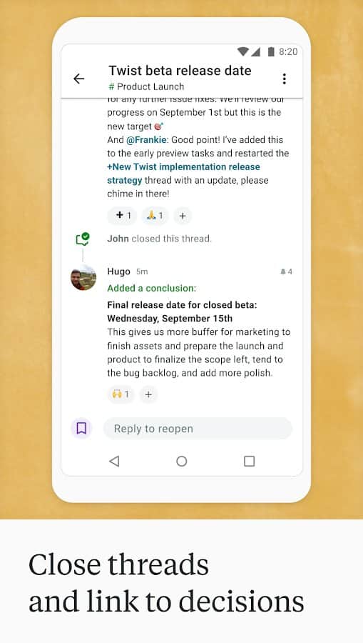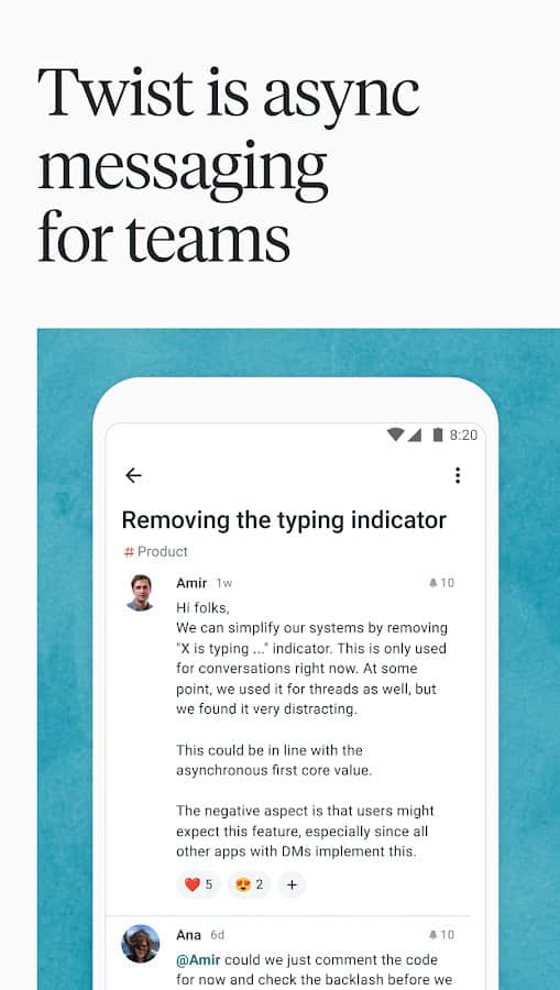 Comments to Twist: Team Messaging on Android