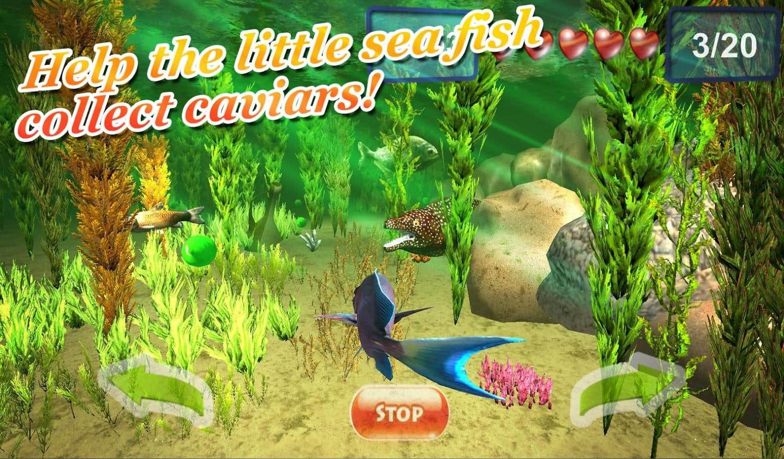 Underwater world. Adventure 3D – симулятор рыбки на андроид, в котором вы опуститесь на морское дно и будете исследовать его. Море полно сюрпризов и опасности, которые будут подстерегать вас повсюду. Исследуйте все морское дно и отыщите все икринки спрятанные вами. На вашем пути будут появляться опасные рыбы, которые могут вас съесть, применяйте маску и становитесь для них невидимым. Также на вашем пути встретятся различные бонусы в виде сердечек для пополнения жизней, и звездочки которые добавят вам времени для поиска икринок. Игра порадует вас реалистичной 3D графикой и бесконечным подводным миром с разнообразными приключениями.