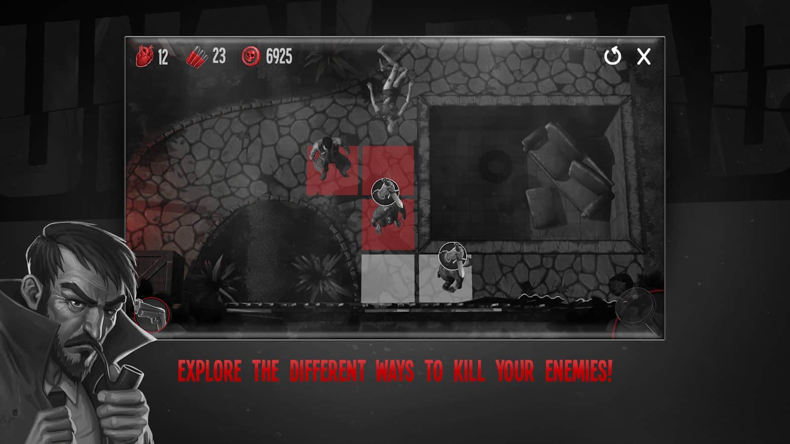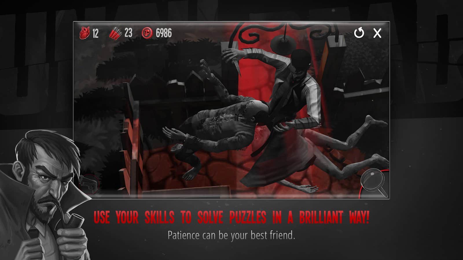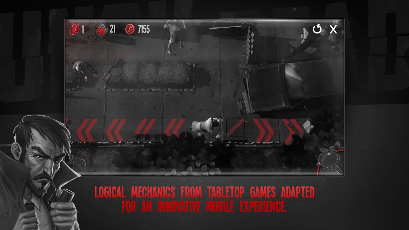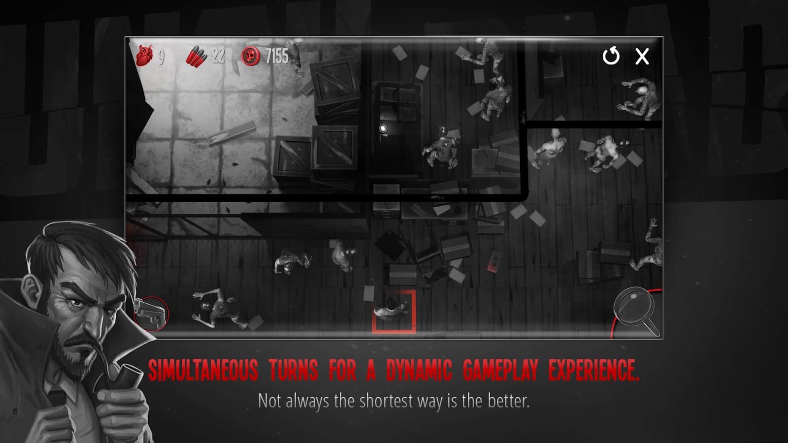 Until Dead - Think to Survive – a turn-based game, where you navigate a dangerous world full of zombies. In this game you will take control of a brave detective John Moore and help him to survive in a dangerous world. Once people began to turn into a zombie and our hero decided to reveal this secret. Collect the clues, solve challenging puzzles, collect keys and fight the zombies. Carefully think through each step and explore the dangerous world around them. Make your way to the designated target and use your skills to solve puzzles and open new pathways for movement. Uncover all the mysteries of the dangerous world and prove that you are the best detective.