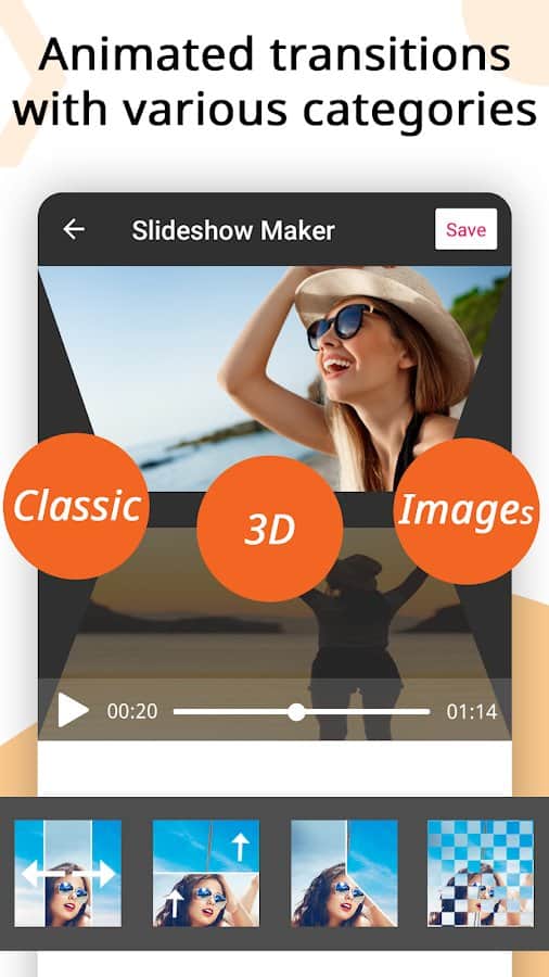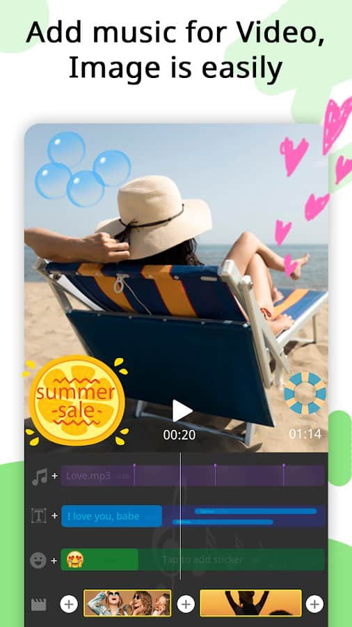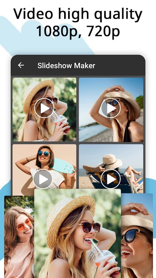 the App Video Maker, Video Slideshow Maker helps you quickly and easily create movies, photo collage or music videos, but also edit them. You can create video slideshow with up to 100 pieces, to crop photos and videos, merge several clips into one, add audio, etc. Create unique stories, and stories and publish them to popular social networks, share with family and friends in messenger. A slide show of photos can also surprise your friends and become a lively element of your memories from life. Choose a variety of topics (people, love, relationship, friendship), add transition effects, change time and speed of presentation, color, style, size, font, shadow and other filters, convert audio and video, export in high quality.