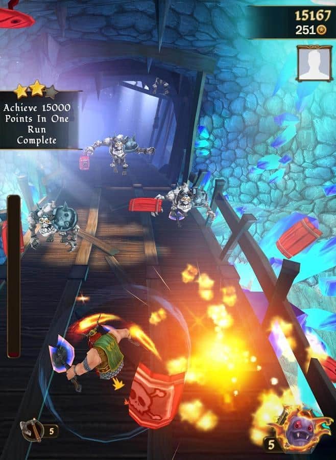 Collect loot from rune-stones, and chests full of gold and diamonds