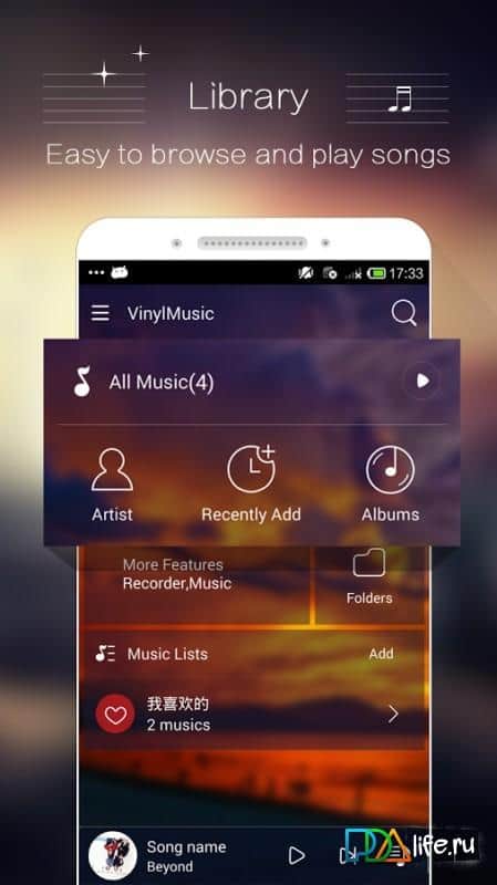 ViNyL Music Player - Convenient and very nice audio player, with many additional features. This app is not only versatile but also has a great interface and a variety of skins, so you can always find something for yourself. EQ settings will make your music sound very cool and different widgets will help to put on the desktop of only basic functions.