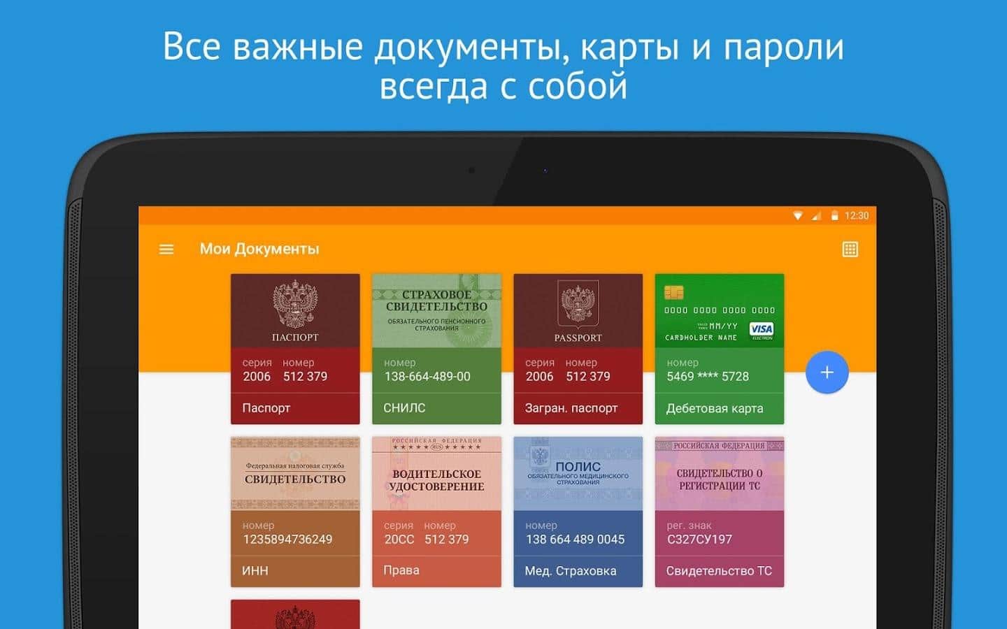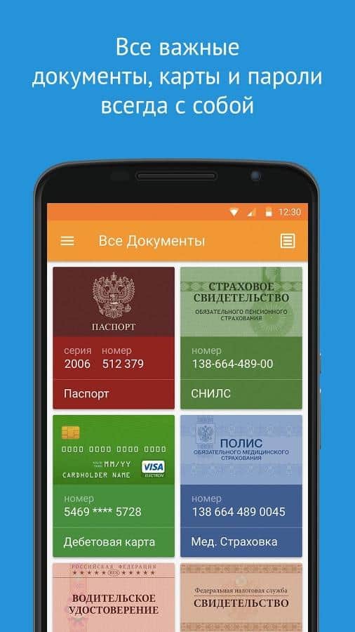 Vkarmane Documents and passwords - are you tired to forget an important document, or you are just out for a walk, and they suddenly were at hand, it is no longer a problem! This all becomes much easier. Pocket is a convenient document Manager, a password Manager and a safety Deposit box for all of your personal data. At the moment it supports documents of Russia and Ukraine, but the developers are not standing still, and in the near future promise to add Belarus.