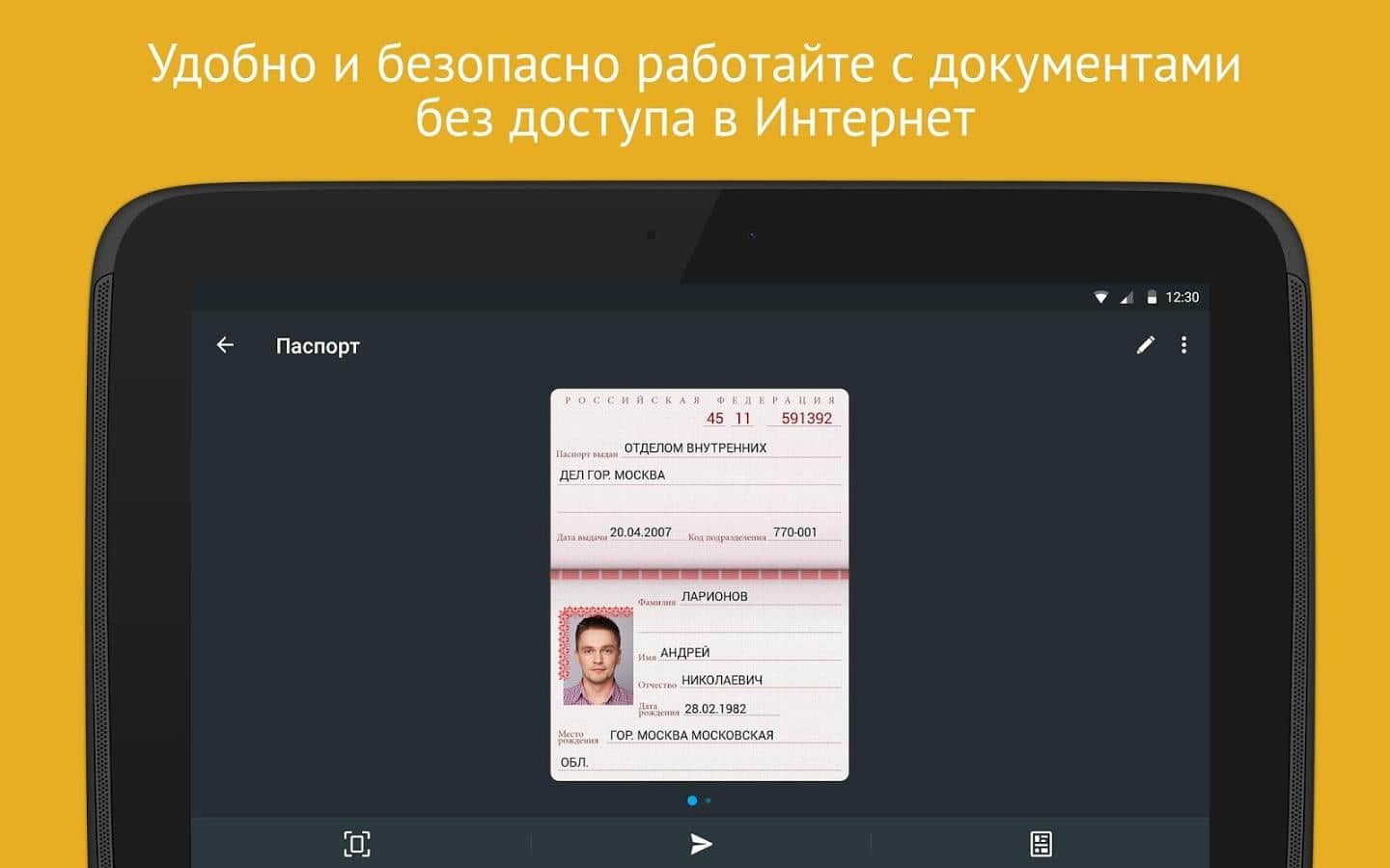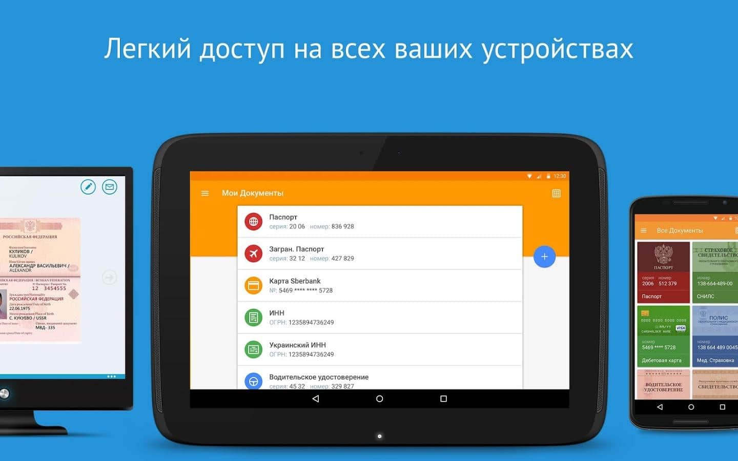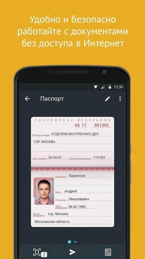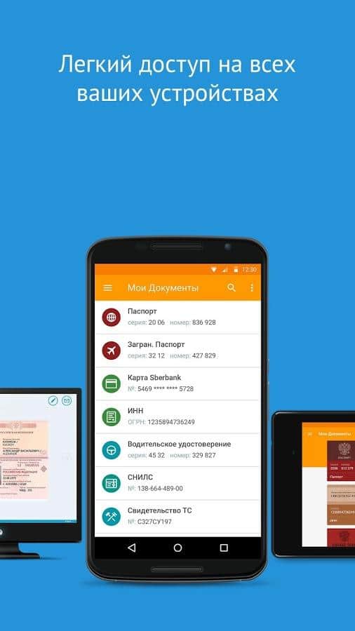 For access to documents does not need the Internet. All documents and passwords are stored only on your device!