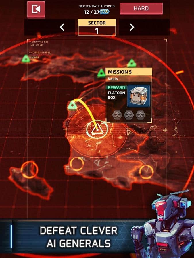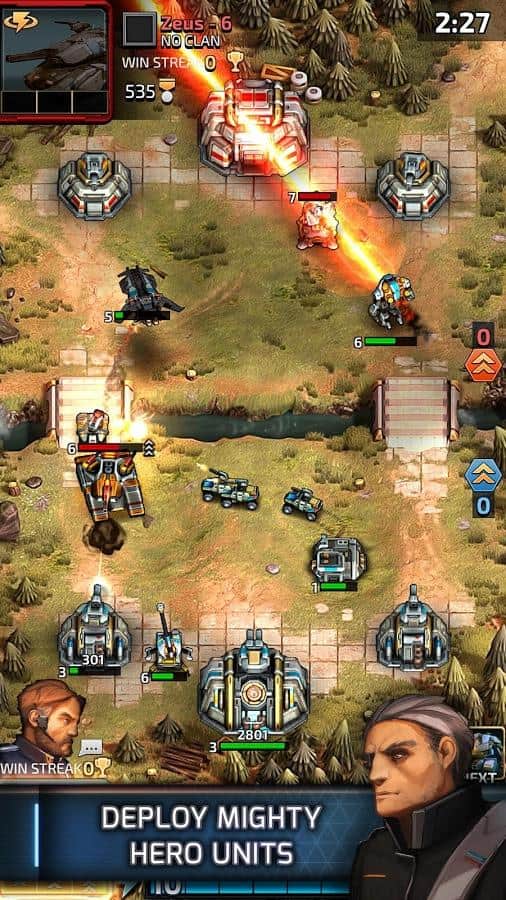 Warzone: Clash of Generals – strategy on Android where you will become General and will control your impregnable base. Your main task in this game is to gather your invincible army composed of various troops and military equipment to fight enemies. Fortify the walls of their base and defend it from the endless attacks. Improve your collection with new cards artillery, aircraft, tanks and other troops. Challenge the strongest players from around the world and fight them in the arena, showing his tactical and strategic skills. Create your own clans with your friends and together fight for the seizure of new territories and the domination of the world.