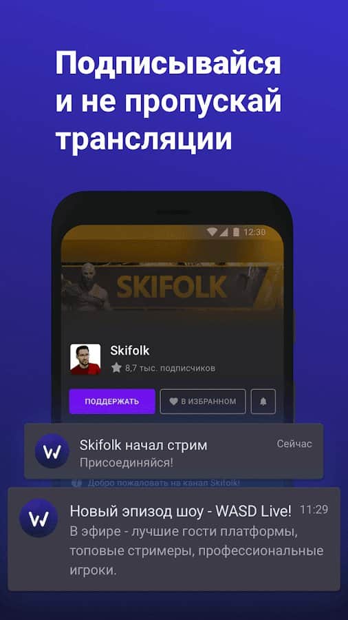 App WASD.TV allows you to select not only the game, but also to dive into the amazing world of streaming. For you are available at any time of the day, many popular games and novelties. Live you'll be able to watch kibersporta, use, IRL video, choose the desired quality of the image. Have the ability to communicate in a special chat with like-minded individuals who support and subscribe to any streamer in one click on the screen. All your subscriptions are contained in the same section for convenience. Adapted to any time of the day design will allow you to enjoy the process in full.