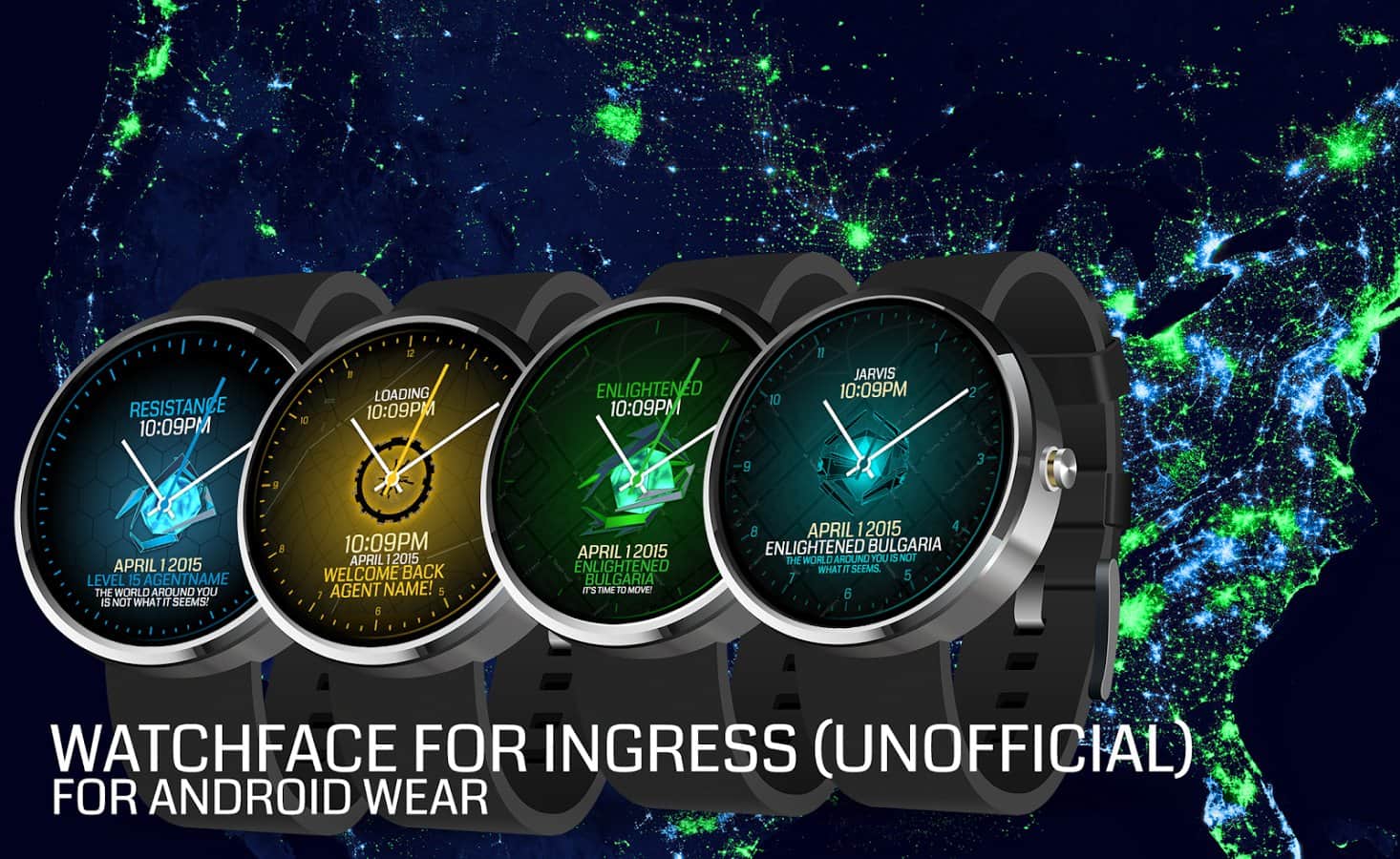Ingress — custom game with augmented reality and if you are a fan, you'll love this watch face for Android Wear. However, even if they are not quietly pass by such beauty does not work.
