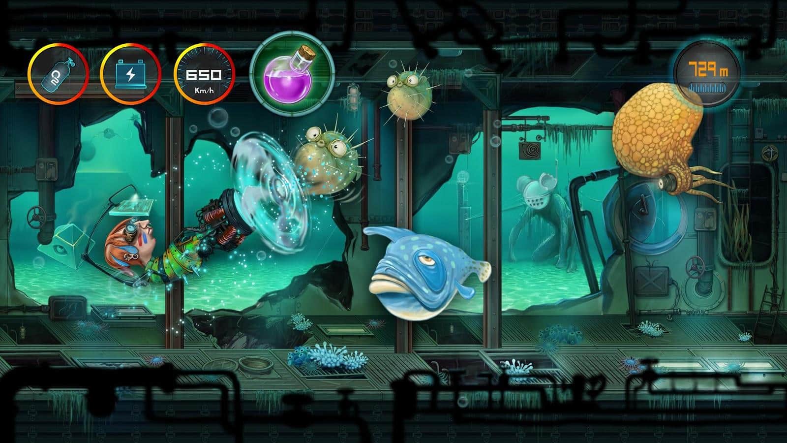 Water Planet - underwater Fun runner in which you have to not only Dodge enemies but watch your oxygen levels and a whole bunch of the rest of which you can die. As the game progresses you will improve your submarine, to add oxygen or to replace the engine. Besides, you will have a few missiles so you can destroy enemies and various bonuses scattered around the level.