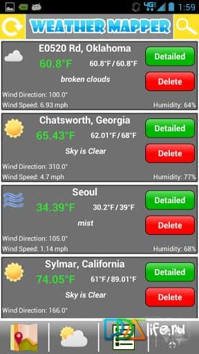 Weather Mapper - This application will allow you to easily and conveniently control the weather in your area in real time in map view or list. When planning a trip anywhere this app will show you what the weather is in those places where you want to go. The application will inform you about temperature, humidity, speed and polarity of the wind. All data is read in real time: clicking on any part of the map, the program will instantly give you the result.