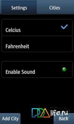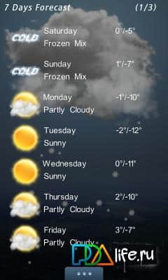 App WeatherCAST to view the weather on Samsung Wave with good animation also has sound and weather forecast for the week!