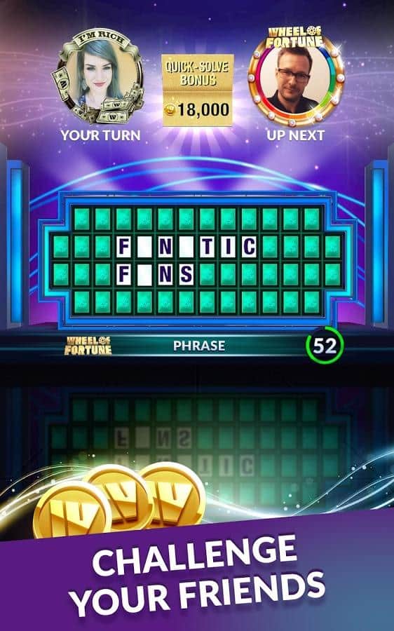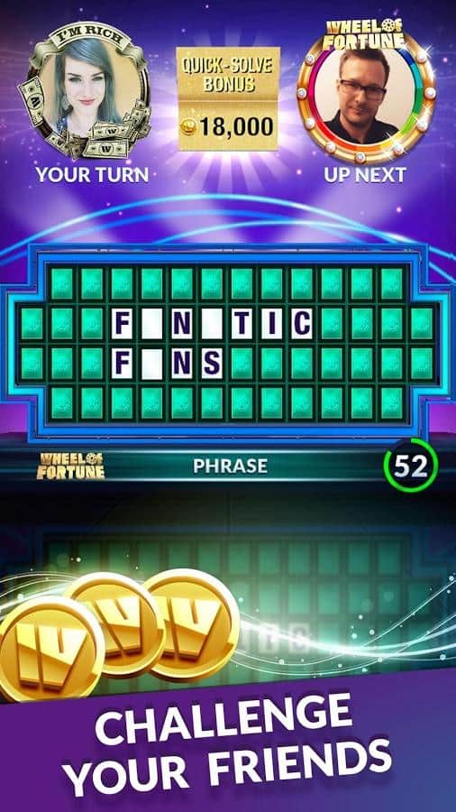 Wheel of Fortune - a game on Android in which you will play in the famous talk show Wheel of fortune. Solve over 1000 different puzzles faster than your opponent and earn money. The game has several modes you can play in single player mode or select multiplayer and fight with your friends. Dress your character in different costumes and accessories, and earn tons of different achievements.