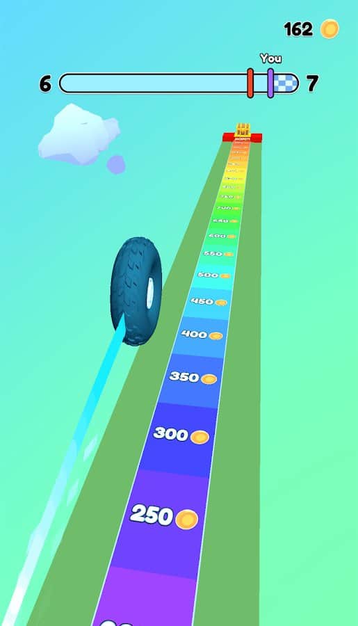 Wheel Race is a unique racing game with bright graphics and a fun, dynamic process. Control wheel and race. Compete with yourself and set records or play in multiplayer mode. Earn money and bonuses and buy new tires, use improve and increase its size. Participate in competitions, games and curry tricks. Pass the mission and challenge the strongest boss. Physics of movement is quite realistic, so think logically and tap the screen to roll.