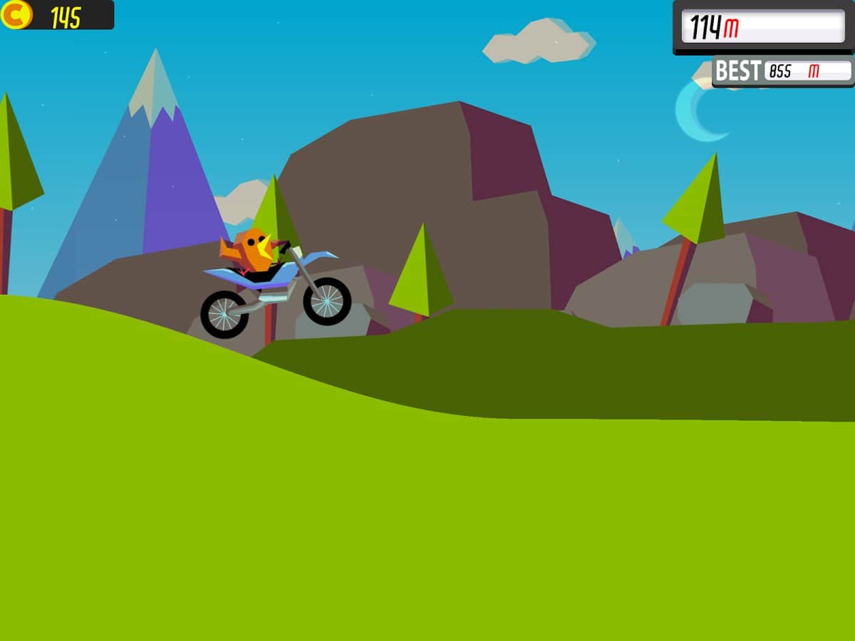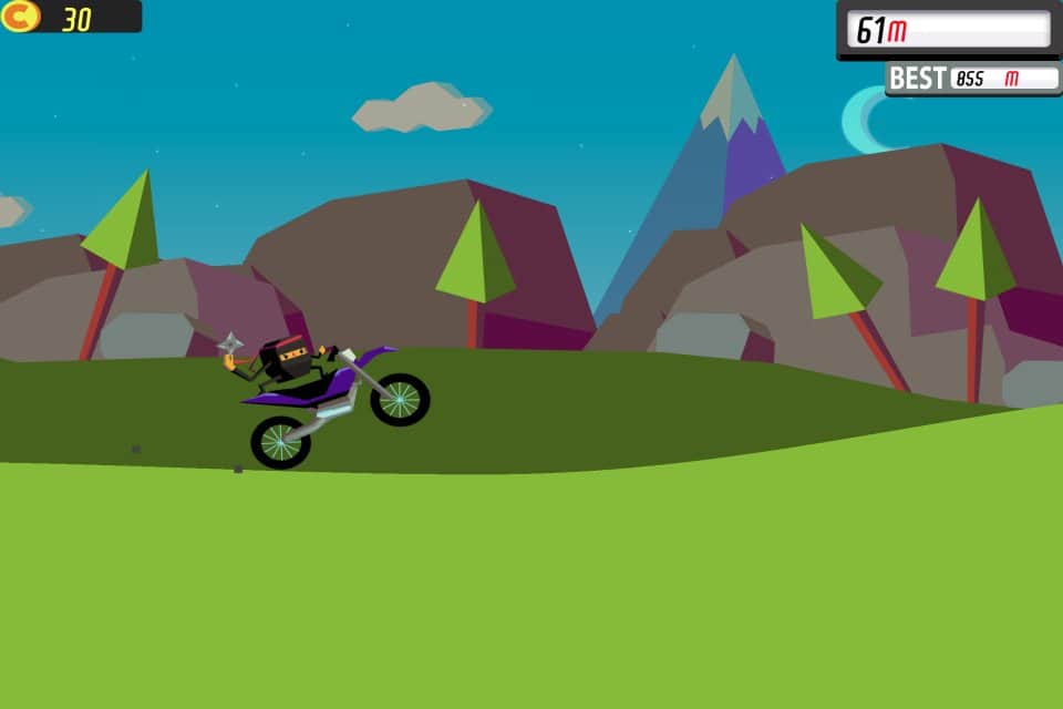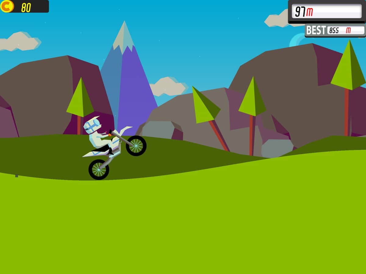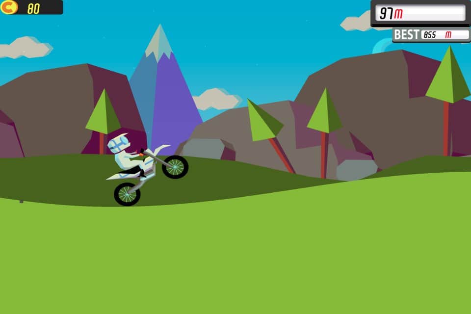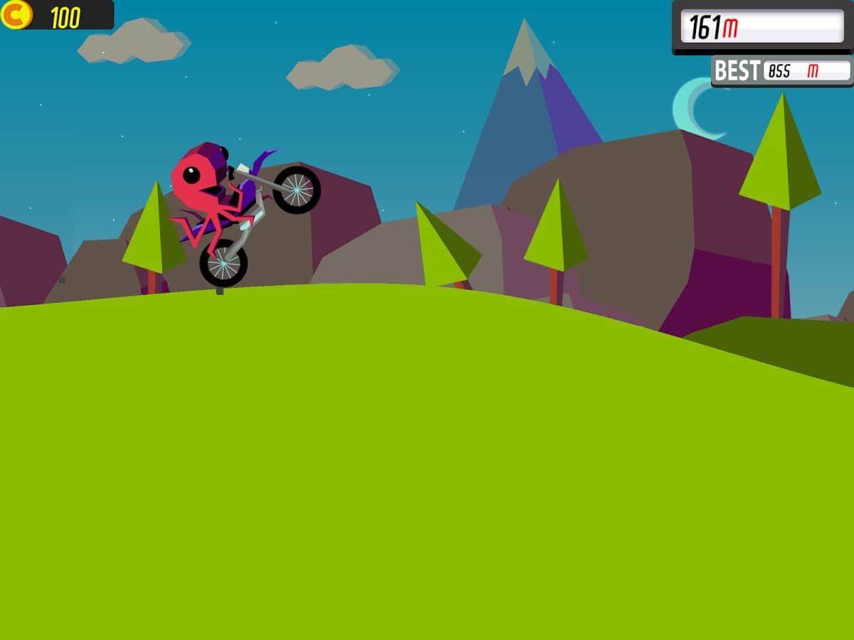 2 Wheelie – bike racing, and even then only on the rear wheel. Riding cross country on a motorcycle is potentially dangerous but if you have to ride on one wheel, it's brand suicide. Management is not complicated and is performed on the principle of pressing on the screen. In order not to fall and not tip over to include slowing. Although at a certain skill you can do without it. The track is winding and bumpy, so be very careful not to RUB any movement and you will definitely turn over. For every completed 50 meters you will be rewarded.