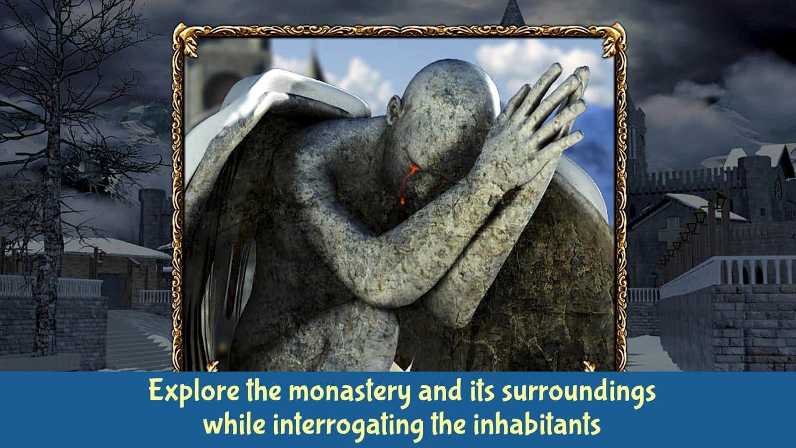 Where Angels Cry is an action – adventure game in the genre of search items. In this game you will find yourself in the Alps where you will investigate a complicated case about the disappearance of brother John and the mysterious cases of crying statues. All actions of this game will take place in the medieval lost in the mountains of the monastery, which hides many secrets and mysteries. Explore the monastery and its surroundings and interrogate all the inhabitants looking for clues and leads. Playing dozens of interesting mini-games, solve challenging puzzles and find the items you need. This game will tell you a sad story of love and betrayal.