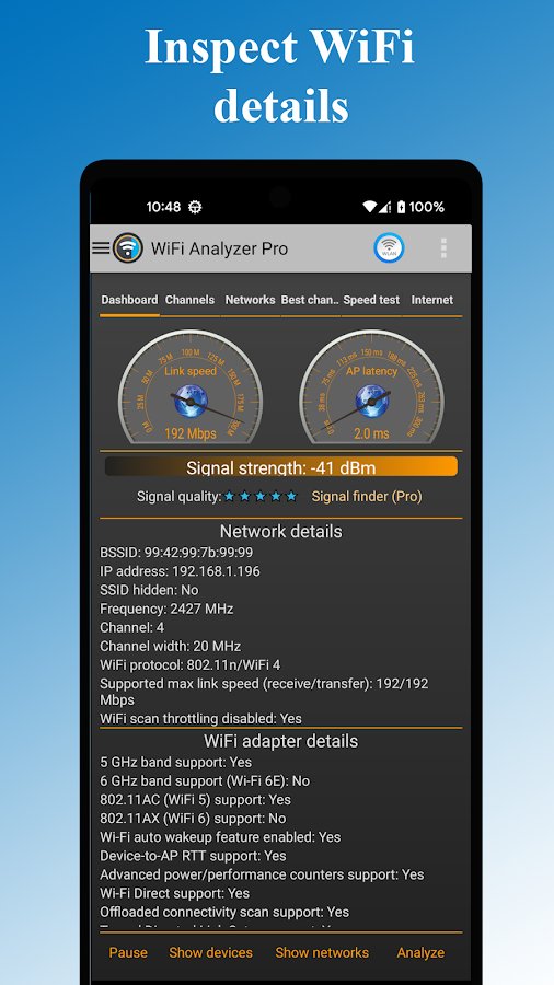Forget about "dead zones" and slow internet. WiFi Info Pro is your personal network expert in your pocket. We combine the accuracy of professional tools with the aesthetics of a modern interface.