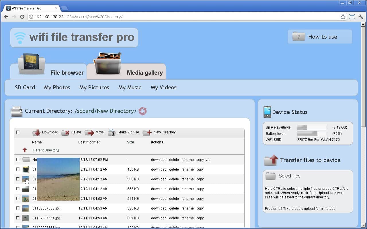 This program is just such a case! All you need to do is just turn on wifi and start WiFi File Transfer. Its intuitive interface is difficult to get lost!