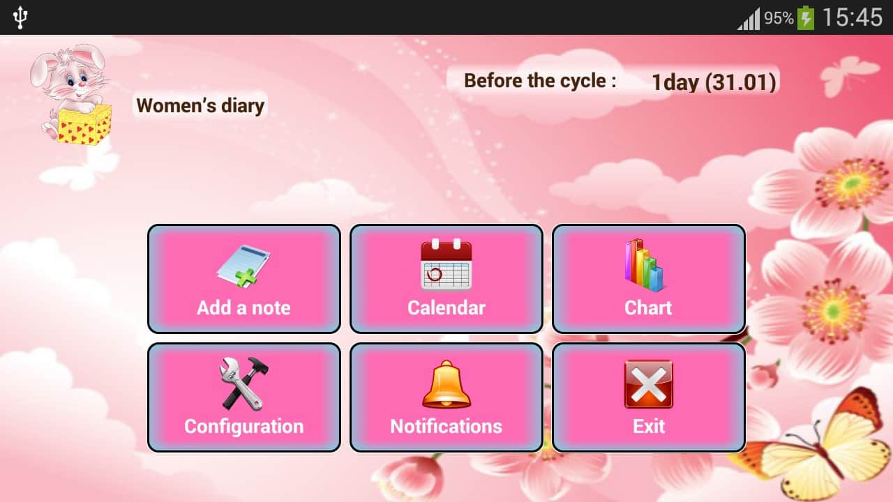 Woman diary allows women to track their menstrual cycle, when ovulation and the fertile period, and also to count calories.