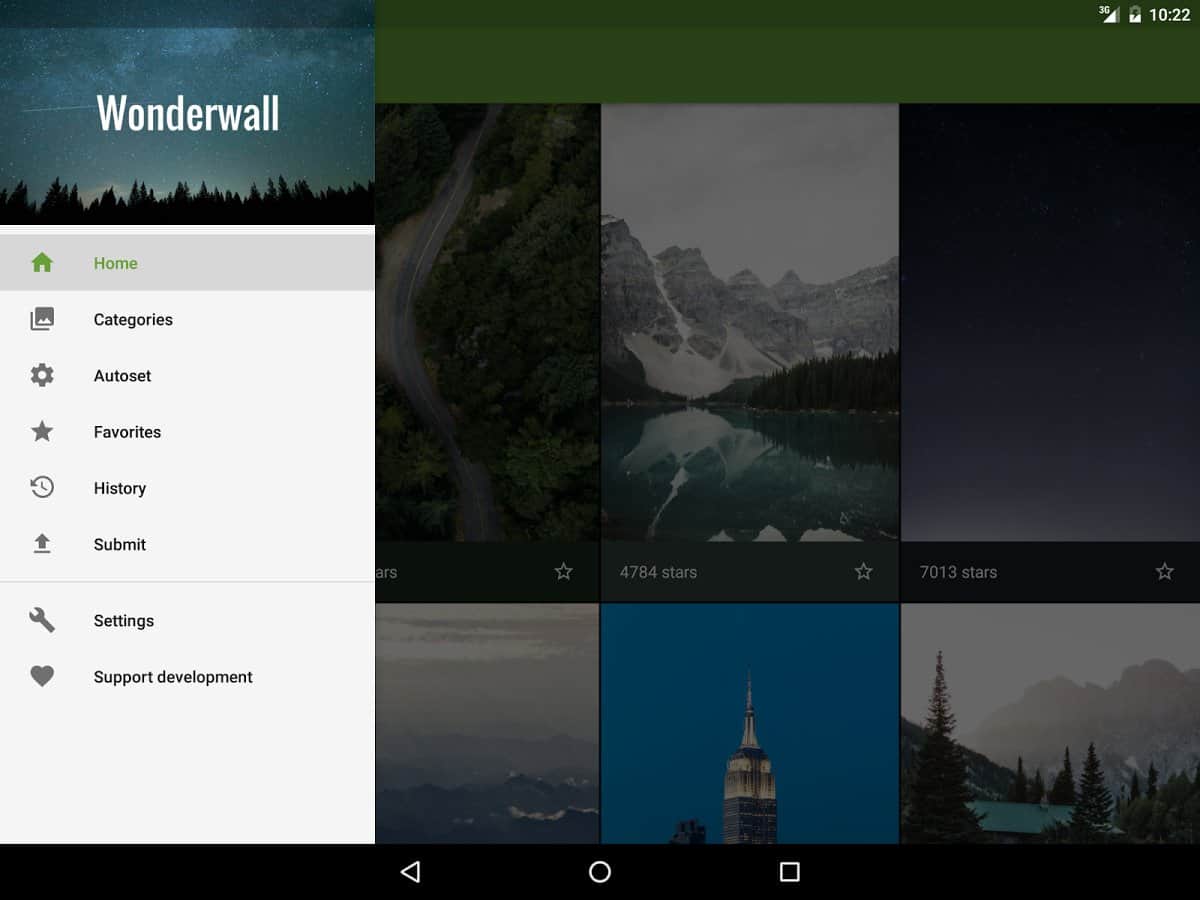 Wonderwall - Wallpapers - Enough to use the drawn Wallpapers for your desktop. Gather a collection of your own Wallpapers made from photos around the world. This application is fundamentally different from other analogs, the main thing is that if you think make good pictures, you can upload them to the server, and after checking by the moderator, they can get in this application. Show to friends so that your photos become famous, or amaze people all over the world, your photos.