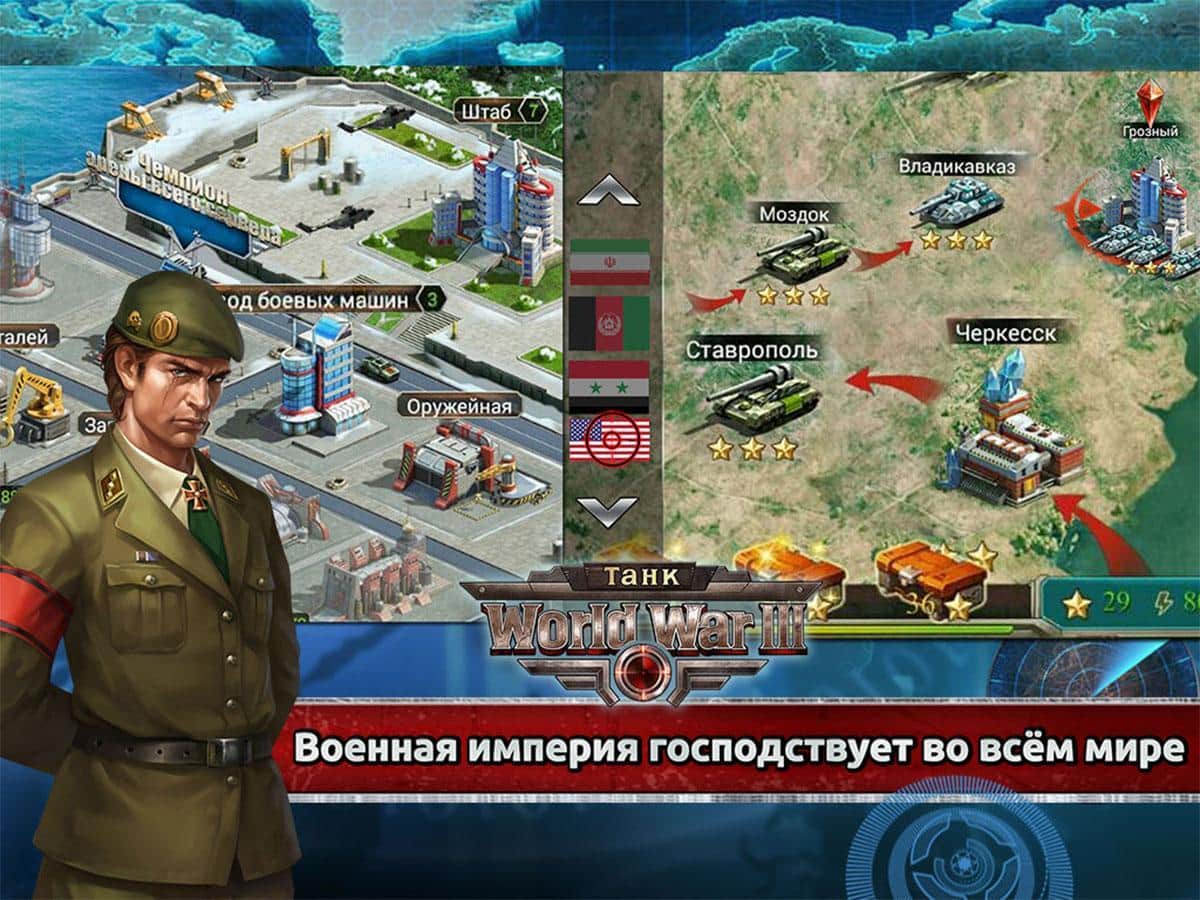 World War III: Танк – отличная стратегия на андроид, которая воссоздаст Третью мировую войну. Не так давно во времена холодной войны между огромными державами началась опасная гонка за право владеть самым мощным ракетным и ядерным вооружением. Все это привело к неминуемой войне. Дайте отпор всему миру и нанесите ответный удар танковыми войсками по врагу. Создайте свою непобедимую армию из различных танков и снаряжения и защитите свою родину от агрессоров. Игра порадует вас хорошей графикой и звуковыми эффектами, что заставит вас почувствовать реалистичность боя.