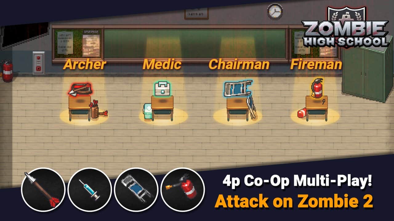Zombie high school - Here is a unique mobile online game in real time Zombie High. In this game you can become a student of the best private school in the world, but not everything is as simple as it seems. Zombies are attacking the school, and the responsibility for saving the school will fall on your shoulders. Climb to the top of the ranking among 8 players using various skills so that zombies can't catch up with you. Or, if you prefer more dangerous tasks, try your hand at fierce battles against zombies. But be careful zombies will not stand idly by and let you roam freely around the school. You will need to prepare well to defeat them.