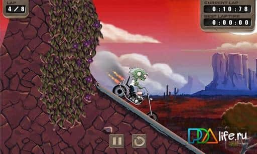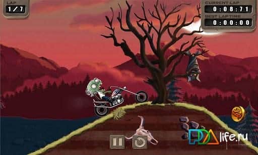 Remember the grandma who was riding his scooter on slopes and mountains? So the game is Zombie Rider something very similar to this, only you control zombakov on a steep bike. The plot of the game following - a cruel scientist has developed a cure against the zombie virus and the human race is rapidly spreading all over the planet. But there is news that there are zombie shelters in Chicago, where every alive dead can be safe. There is only one way to know the truth is to get on the bike and see it yourself. Come to the finish as fast as possible, collecting on its way a variety of coins. You will drive along the famous U.S. route 66. Management in the game by using the accelerometer.