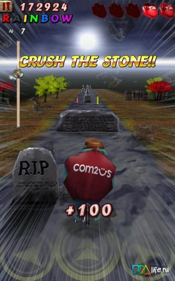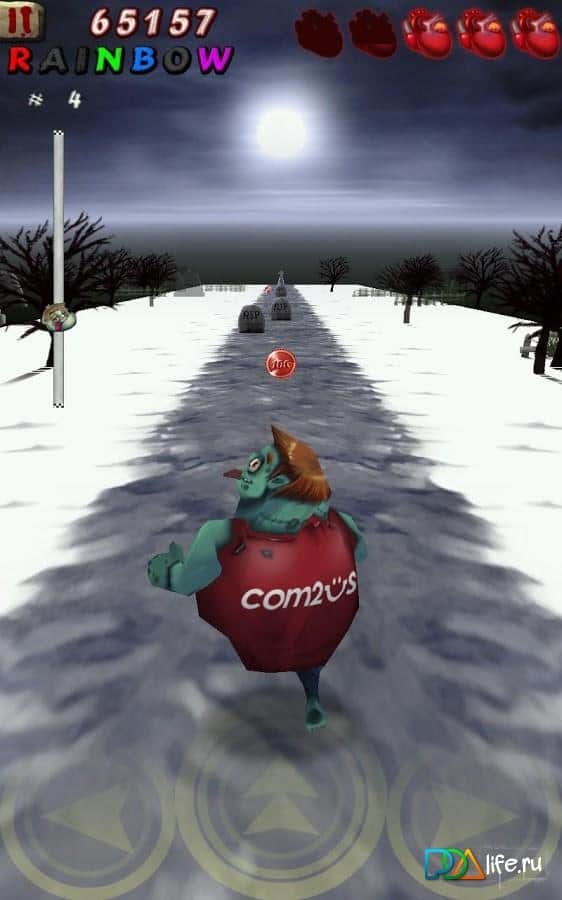 Zombie Runaway is a game of the genre runner for Android. You have to flee from crowds of people. And contrary to the stereotype that zombies are slow and clumsy action, you have to manage running a fairly nimble athlete who really does not want to stop. So, run and avoid obstacles, be it the graves, the crosses of different sizes. Some can jump and some will have obbegat, otherwise nothing. Along the way you will also get bonuses, prolonging or life-giving, as well as boosters. In addition, the game has 2 modes - arcade and run it for a while. Both mode will give you many hours of pleasure! Good luck in the race! Download Zombie Runaway for free and google market!
